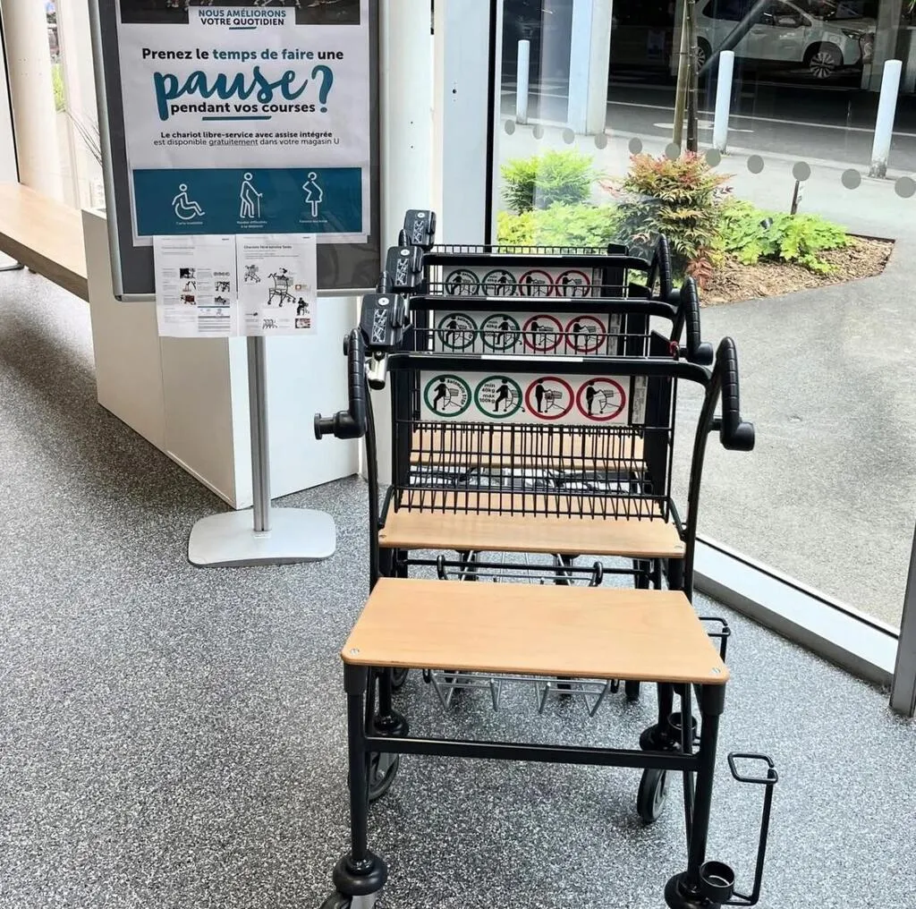 Le supermarché Super U Beaucouzé offre une nouveauté à ses clients avec la mise en place de chariots banc. Nous sommes toujours à l’écoute de nos clients et nous savons que faire les courses peut parfois être un défi, surtout pour nos aînés ou ceux qui ont des difficultés à se déplacer. Ils sont conçus pour offrir un maximum de confort et de sécurité aux personnes,