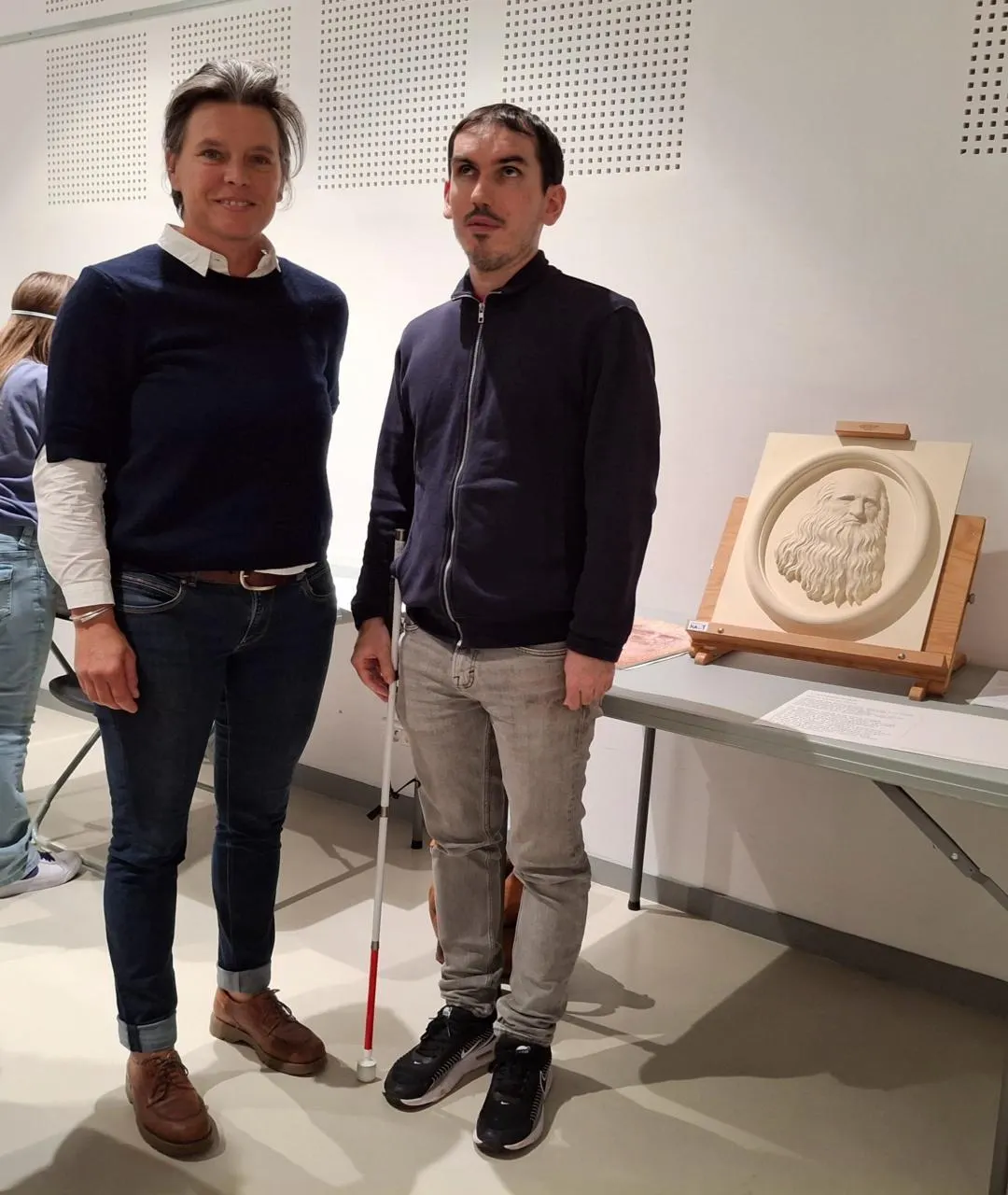 Chaque œuvre modélisée est accompagnée d’une reproduction de l’originale en couleur, d’une description sur un livret en braille, gros caractère et version audio décrite.