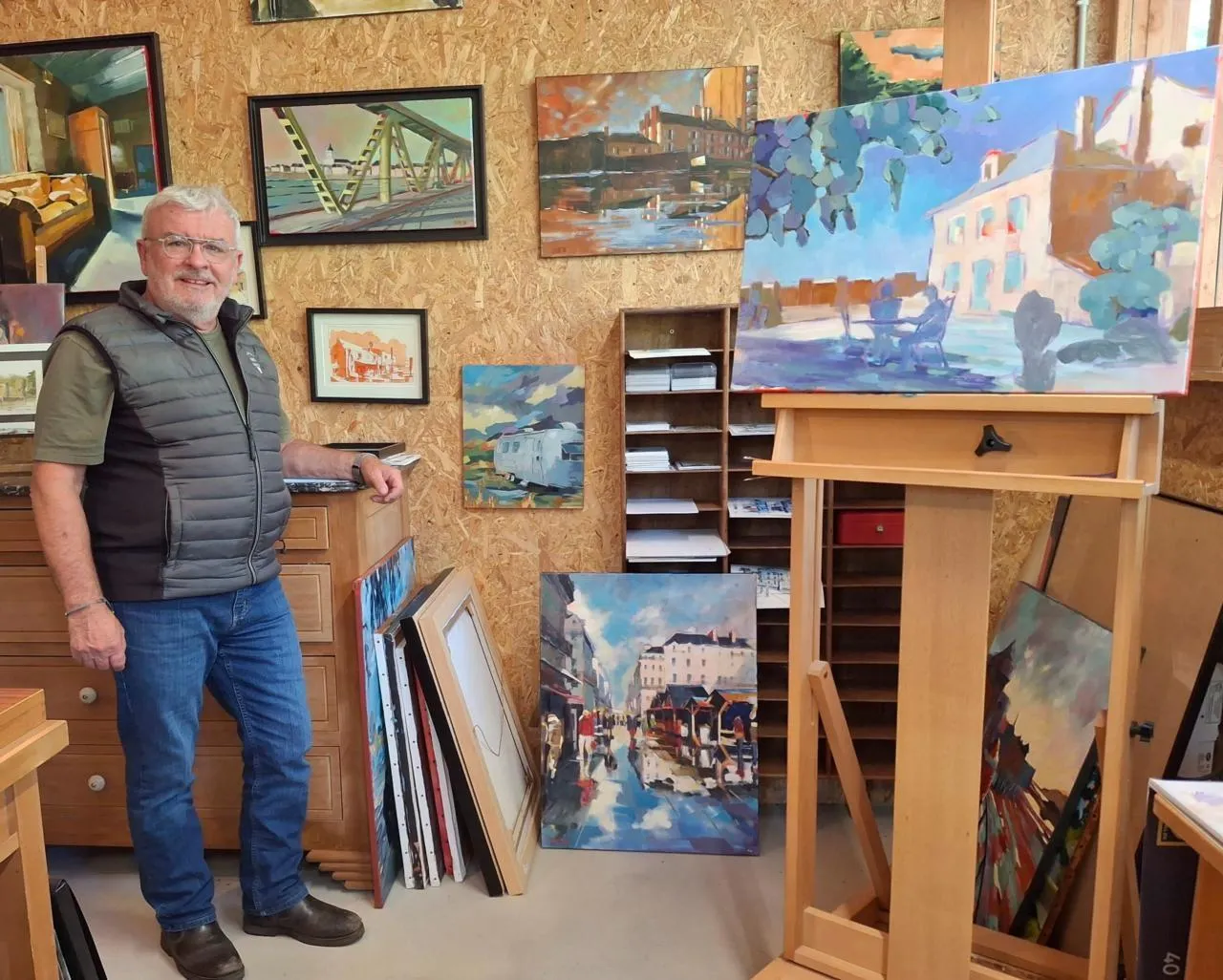 Jean-Pierre Bredoux a commencé à peindre une fois la retraite, en étant sous l’égide de Laurence Chagnias, peintre et restauratrice de tableaux.  Elle m’a orienté très vite vers un autre peintre qui est maintenant mon maître et avec lequel je travaille très souvent, Florent Maussion, qui est un peintre du Segréen,