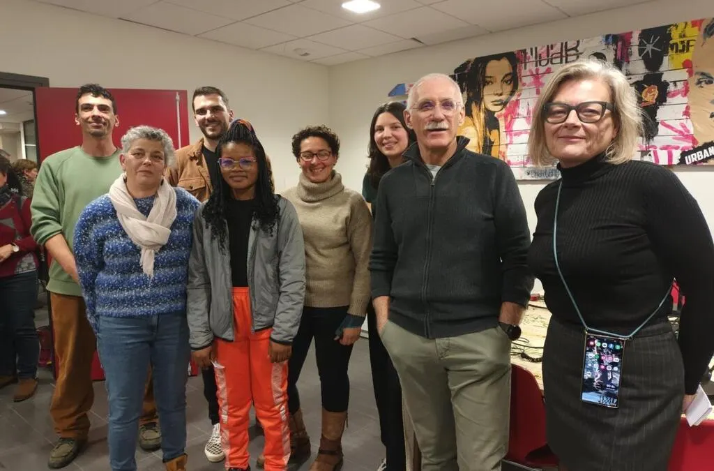 Noélie (en gris et rouge) entourée de l’équipe de la MJA et des élus. © CO
