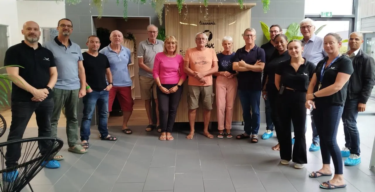 Ludovic Pons, directeur de Couzé’O (à gauche), et Yves Meignen, président du Sicab (avant dernier depuis la droite) avec des utilisateurs de l’espace bien-être. © CO