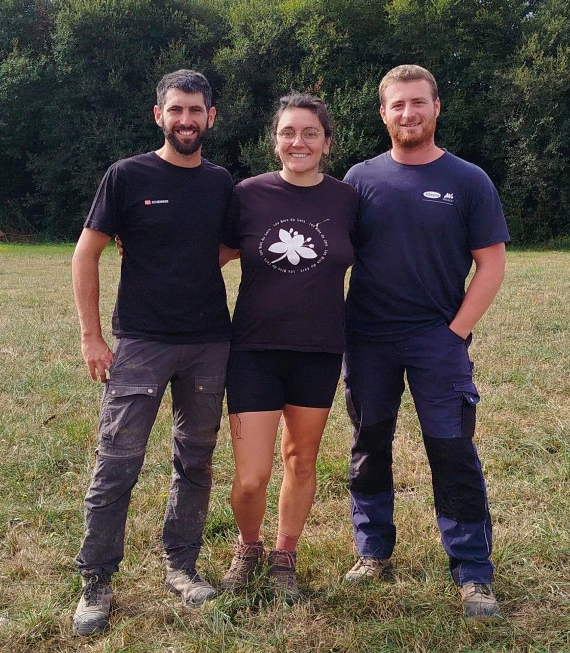Léa : « Nous baignons tous les trois, François, Baptiste et moi, dans le monde du maraîchage depuis une dizaine d’années déjà . Tous polyvalents, nous avons toutefois nos spécialités. Après un BTS en horticulture et 7 ans de salariat, Baptiste s’est spécialisé dans le travail du sol et la mécanique. François avec un BTS d’aménagement paysager, 8 ans de maraîchage et son goût pour le travail bien fait, il prendra soin de la ferme comme de la prunelle de ses yeux. Pour ma part, j’ai un diplôme d’ingénieur agronome en poche et 6 ans de salariat m’ont donné le goût d’épier les insectes et de dénicher les maladies. Notre vision commune et nos complémentarités nous ont rapprochés et cela fait maintenant plus d’un an que nous travaillons sur notre projet d’installation. »