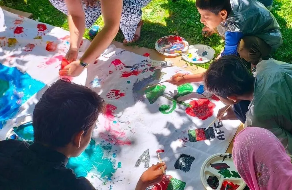 Laurette, Alice, Eugénie et Jade ont alors proposé aux enfants et à leur famille de participer à trois séances d’ateliers d’expression par la peinture. Elles expliquent : « Le but était de leur permettre de sortir de leurs appartements en partageant un temps en communauté, autour d’une activité favorisant l’expression de soi et l’expérimentation. » Ensemble, après chaque séance, l’échange se poursuivait autour d’un goûter.