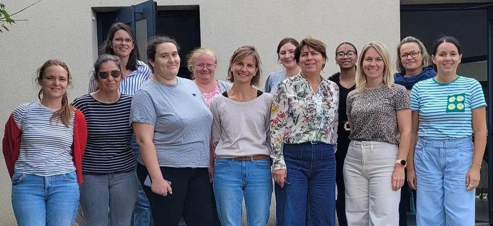 Une équipe presque au complet autour de Rachel Charbonnier, la cheffe d’établissement (3e à partir de la droite). Absente sur la photo : Louise Batardière. © Ouest-France