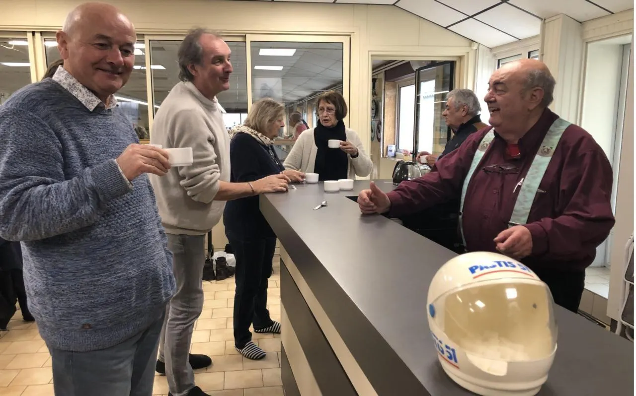 Beaufort-en-Anjou, le 22 février 2024. Le repas pris à la société et le café à suivre sont des « additifs à la boule de fort », selon l’expression président de l’Union Comète Yvan Gilbert, à droite sur la photo. L’essentiel est bien sûr la boule de fort, « mais il faut faire venir les gens ». © Archives CO - Christophe RICCI
