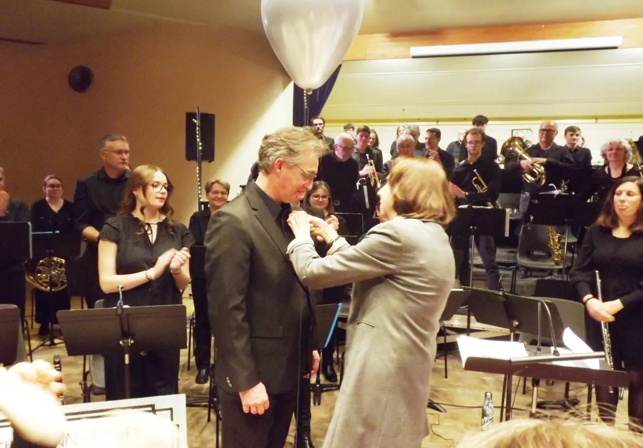 C.F : « Effectivement, il a reçu la médaille de la Confédération Musicale de France des mains de la conseillère départementale Marie-Pierre Martin, ainsi qu’une statuette de chef et une baguette gravée à son nom de notre part à tous. »