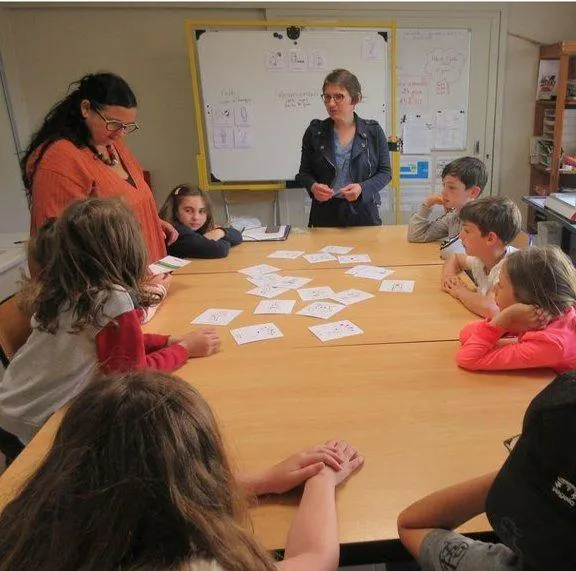Hier matin, des professionnels de santé du Pôle santé Ouest Anjou (PSOA) sont intervenus dans les classes de CE2 de l’école Léonard-de-Vinci. Tour à tour, avec un groupe d’élèves, Lorène Bremaud, infirmière, Claire Beduneau, diététicienne, et Antoine Marquet, Clémentine Huet, kinés, ont pu expliquer et sensibiliser les enfants à l’importance d’une bonne alimentation et aux bienfaits d’activités physiques. Ils l’ont fait de façon ludique, à l’aide de fiches plastifiées représentant de petits personnages, avec ces légendes : avoir le ventre qui gargouille, avoir la nausée, mal au ventre, à la tête…
