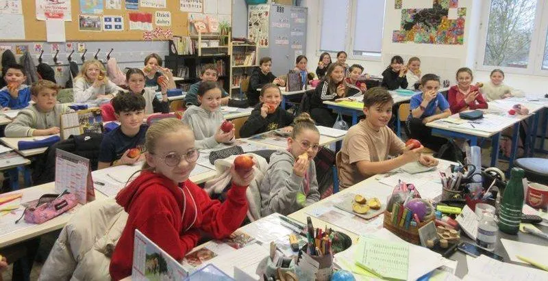 Les élèves de l’école Saint-Louis ont pu déguster de succulentes pommes bio fournies par la mairie. © CO