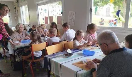 La classe de CP – CE1 de l’enseignante Danielle Angebault de l’école Saint-Louis a accueilli des seniors, vendredi 6 juin, avec l’association Familles rurales, représentée par Stéphanie Colas, pour un temps partagé. Autour du projet de l’année sur l’art, chacun a créé un modelage d’animal de son choix. Ce beau moment de partage intergénérationnel s’est terminé par un goûter. © CO