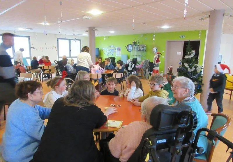 Le mardi 19 décembre, 25 élèves des classes CE1 et CE2 de l’école Léonard-de-Vinci se sont rendus à l’Ehpad de Bécon-les-Granits, pour passer un après-midi de détente avec les résidents. « Cette rencontre intergénérationnelle permet de développer l’empathie », souligne Maguy Feufeu, enseignante, qui explique : « Nous avons commencé par un travail d’écriture, en préparant des cartes « plaisir d’offrir » que nous allons remettre en cadeau aux résidents, pour les fêtes de fin d’année. » À la satisfaction générale, enfants et résidents ont pu dialoguer et participer ensemble à des jeux de société.