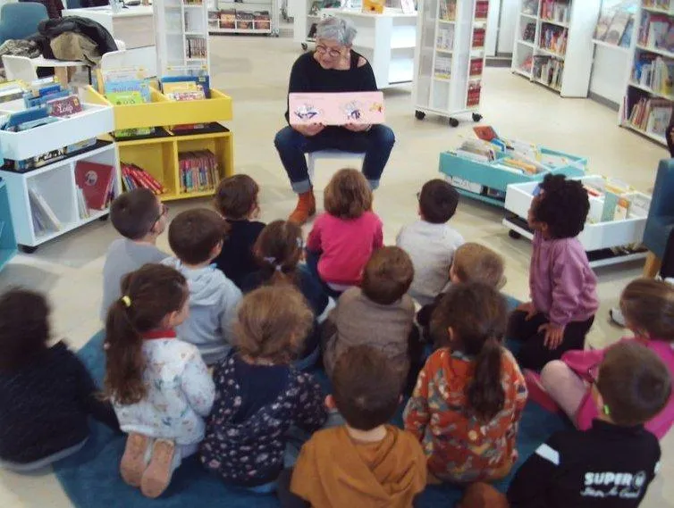 Lundi, Sophie Cruard, bénévole à la bibliothèque de Bécon-les-Granits, a animé une séance de lecture plaisir pour les élèves de l’école Léonard-de-Vinci. © Ouest-France