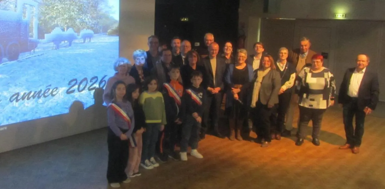 Marie-Ange Fouchereau entourée de ses adjoints, de représentants du conseil desenfants et des instances départementales et sénatoriales, à l’issue de sa dernière cérémonie de vÅ“ux. © Ouest-France