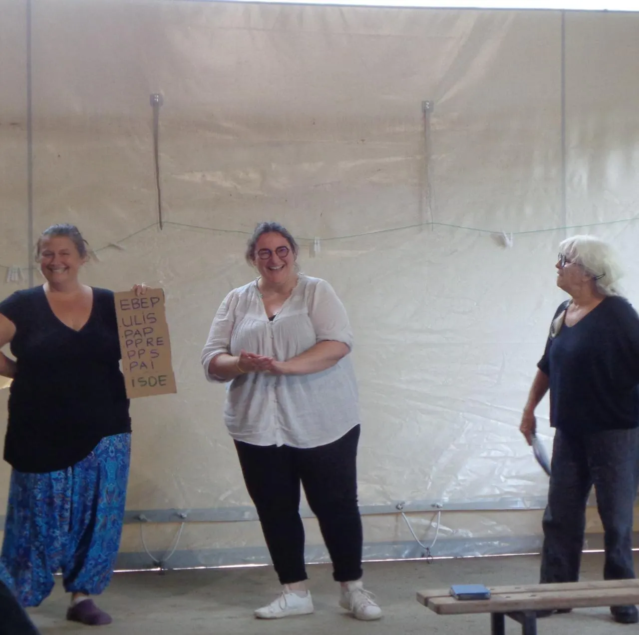 Les intervenantes lors d’une conférence gesticulée ayant pour thème « Comment en est-on arrivé là », sur l’école publique. © CO