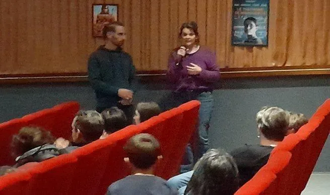 François Bouhiron, animateur pédagogique et Charlottte Normandin, référente famille au centre socioculturel des Coteaux du Layon, ont débattu avec les cinéphiles. © CO