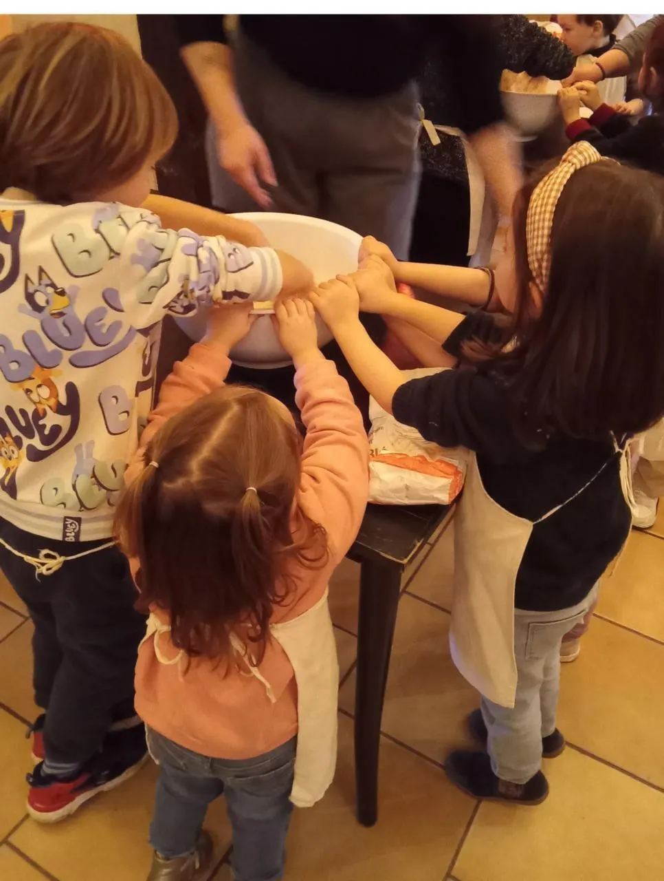 Les élèves pétrissent et fabriquent leur pain. © CO