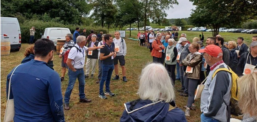 Dès 8 h 30, des groupes de quarante à cinquante personnes étaient accompagnés par un vigneron local, comme Vincent Rousseau, du domaine des Fontaines :  Au programme : une randonnée à travers les coteaux, l’occasion d’admirer un château, apercevoir un moulin-cavier du XVIe siècle et assister à une démonstration de boule de fort. Une randonnée pédestre de six km ponctuée de trois pauses gourmandes, avec des bouchées de la Maison Bahuon pour découvrir les vins de l’appellation Bonnezeaux en compagnie de vignerons partageant leur passion et savoir-faire à travers des paysages du territoire.Â