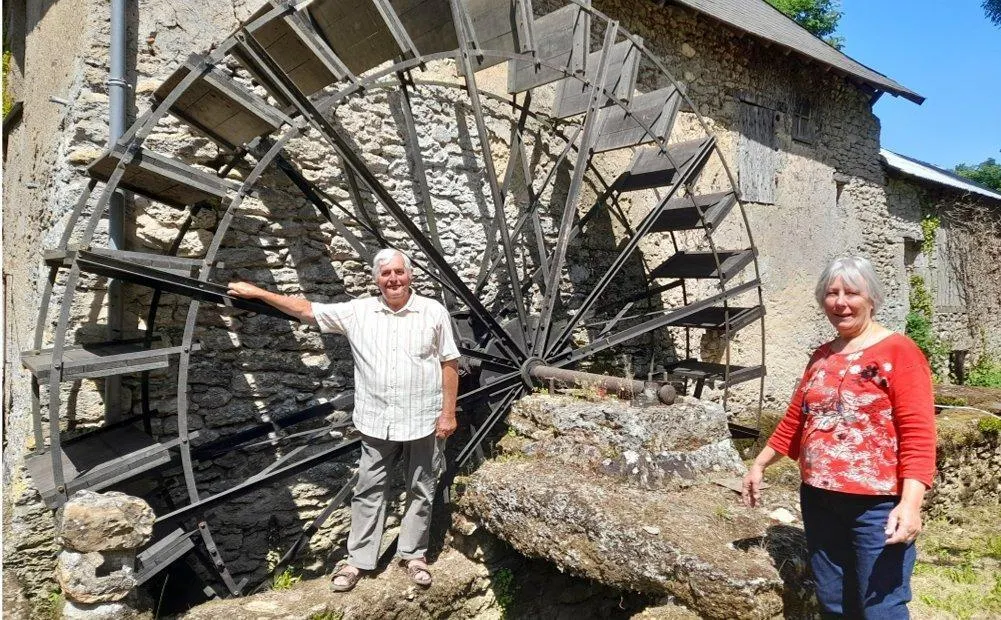 Jean-Pierre et Danielle Stanislas, devant la roue de 5,50 m de diamètre. © CO