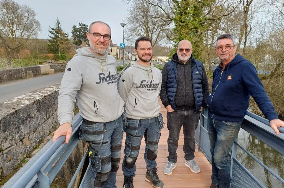 De g. à d. : Ludovic Piau, Pierre Braud, Fabrice Chérel et Jean-François Vaillant, sur la passerelle rénovée. © CO