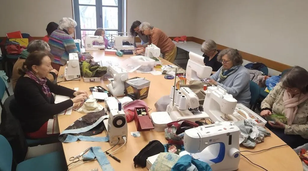 La ruche des couturières du samedi s’active autour de la table. © CO