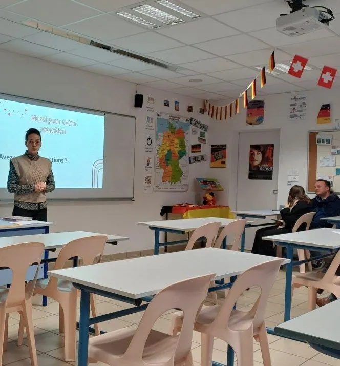 Mme Lassinot, professeured’allemand, a présenté le séjour aux élèves et aux familles pour leur échange linguistique. © CO