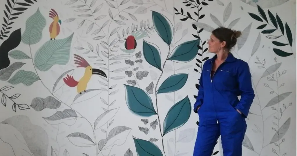 Mathilde Gaugain : « J’ai d’abord été travailleuse sociale pendant 14 ans. À la naissance de ma troisième fille, j’ai été arrêtée longtemps avant. J’ai commencé à dessiner sur les murs de sa chambre. J’y ai passé beaucoup de temps et cela m’a plu. Et j’ai toujours dessiné depuis. Cela a commencé par hasard, puis de fil en aiguille, vu ce qu’en disaient les gens, ils m’ont demandé d’aller chez eux. Au départ, j’ai fait ça comme ça, puis j’ai créé mon autoentreprise, L’ampoule maboule, en 2023. Ce nom, je l’ai en tête depuis toute petite : ampoule pour idée et maboule, foufou ».