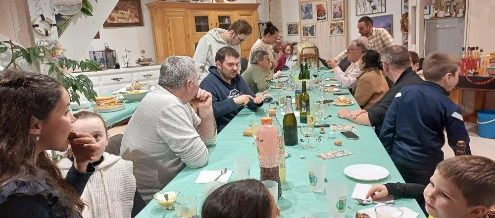 Une fois n’est pas coutume pour les villageois de l’Arbalètrier qui se sont retrouvés ce samedi 7 février chez Maryse et Patrice pour le traditionnel repas d’hiver. Vingt-trois convives (enfants et adultes) ont pu apprécier le hachis de canard, proposé pour la première fois à tout le voisinage. Tous ont ainsi eu l’occasion d’échanger sur différents sujets, et de déguster les entrées et desserts préparés par les voisins. © CO
