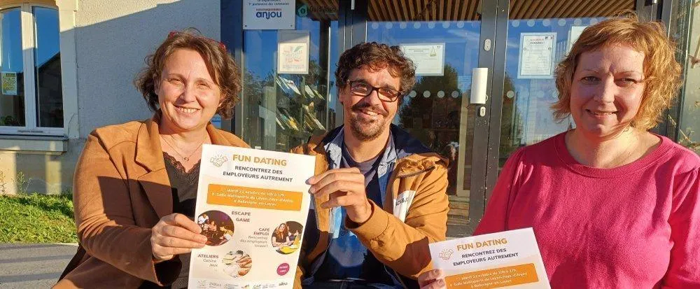 De gauche à droite : Frédérique Savarieau, coordinatrice développement économique à Initiatives Emplois ; Vincent Cousseau, animateur jeunesse au centre socioculturel des Coteaux du Layon et Claire Beghin, chargée de coopération au centre socioculturel des Coteaux du Layon. © CO