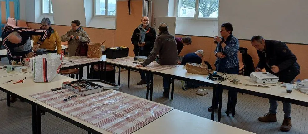 La salle des Douves de Thouarcé est une fourmilière, ce samedi matin 21 février. L’atelier du Repair café est bondé.