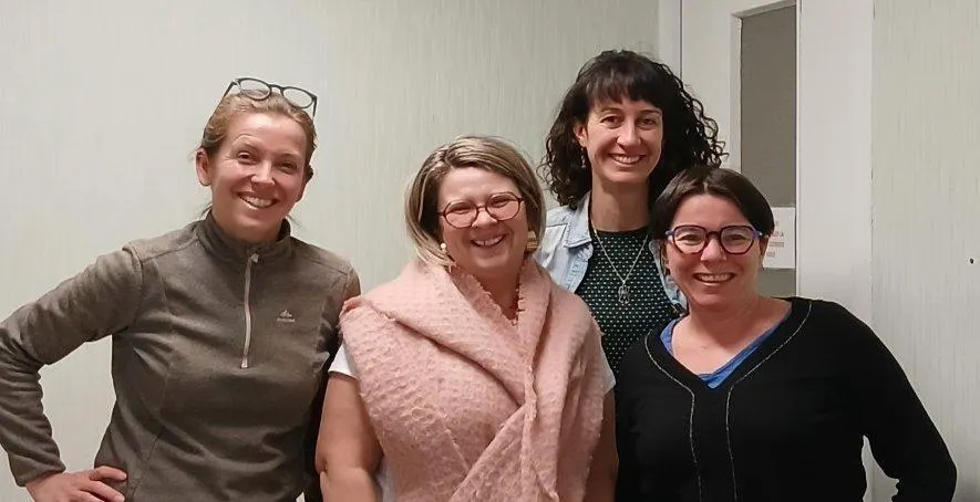 Aurélie Kurth, animatrice adulte/famille au centre social de Brissac, Sonia Godard, animatrice sociale à l’Ehpad Henri-Raimbault de Thouarcé, Émilie Blanvillain, animatrice seniors au centre socioculturel des Coteaux du Layon et Séverine Lenorman infirmière à l’Ehpad de Thouarcé, diplômée universitaire en soins palliatifs. © CO