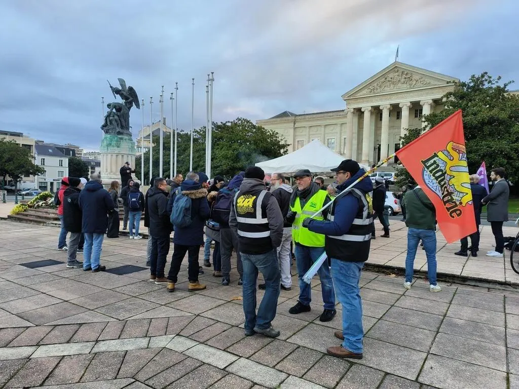 Angers, vendredi 22 novembre 2024. Soutenus par une centaine de personnes dans la matinée, les sept salariés de Michelin assignés à la suite du blocage du site de Cholet vont avoir droit à une deuxième audience. © CO - Benoît PELLOQUIN