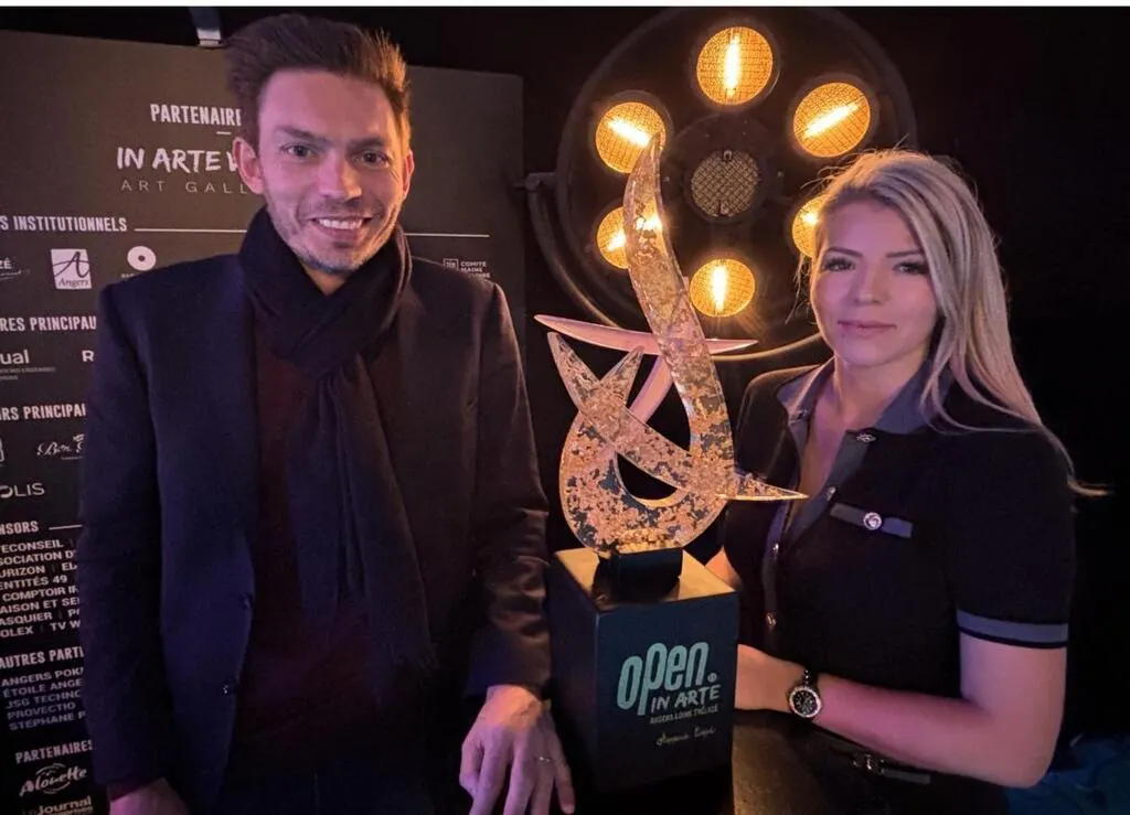 Celui-ci fait référence à la cause de la lutte contre les violences faites aux femmes. « Ce trophée en résine époxy, agrémenté de feuilles d’or et de fer forgé, représente des lettres entremêlées : le O d’Open, le A d’Angers et le T de tennis », explique l’artiste qui a réalisé un second trophée que la gagnante du tournoi pourra rapporter à son domicile.