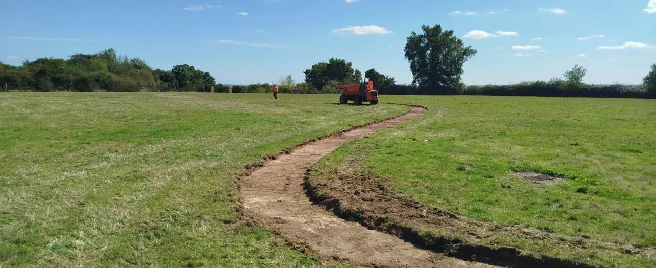Les allées piétonnes en cours de réalisation dans le parc de la Piverdière (second lauréat 2024). © Ville de Bouchemaine