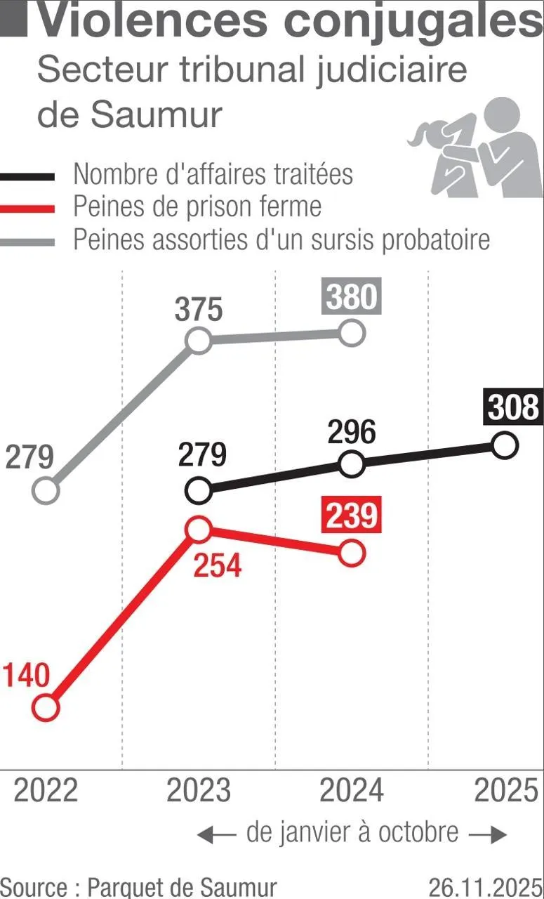En 2024, la police nationale est intervenue 99 fois pour des violences intrafamiliales à Saumur, contre 58 fois en 2023, soit une augmentation de 70 %. Les chiffres 2025 devraient être à l’avenant. Ce mardi 25 novembre 2025, Journée internationale pour ...