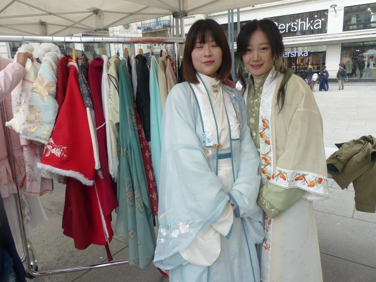 Deux étudiantes chinoises encourageaient à essayer les costumes traditionnels. Ouest-France