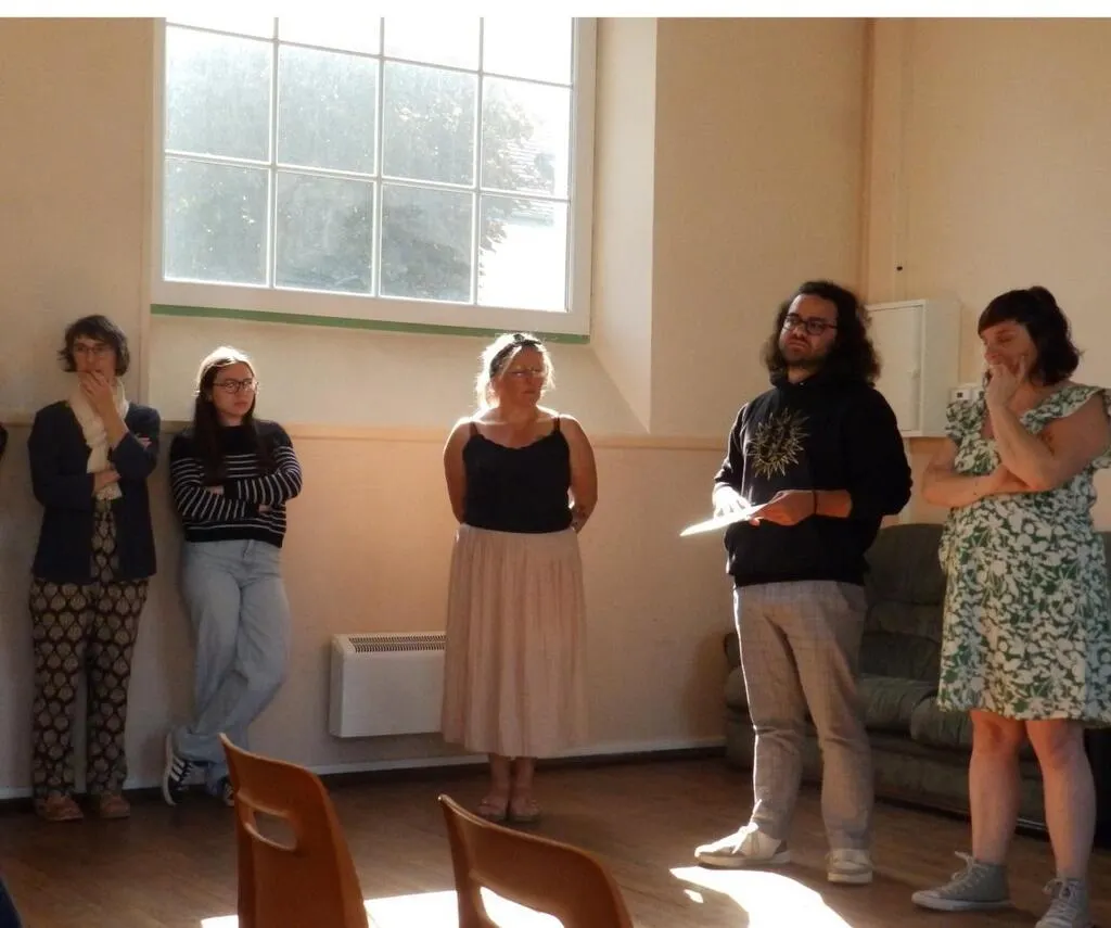 Ce temps du lancement du dimanche 18 mai a permis aux quarante personnes présentes de laisser libre cours à leur questionnement sur le spectacle. Ont été évoqués le renfort de la vidéo pour les décors, l’encadrement pour les chants, l’éthique du groupe qui joue collectif.