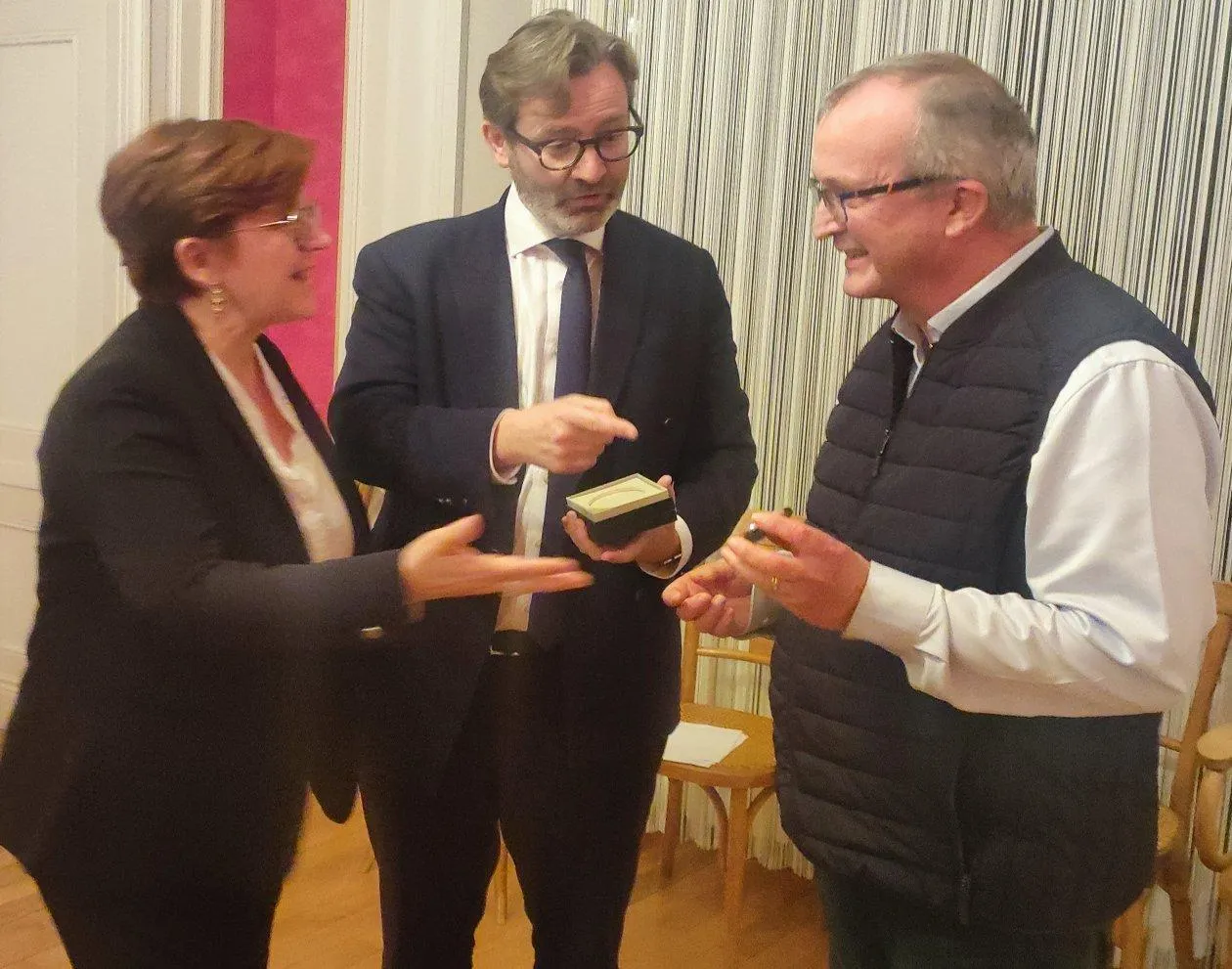 Corinne Bourcier et Emmanuel Capus, sénatrice et sénateur ont remis la médaille du Sénat à Pascal Crossouard © Ouest-France