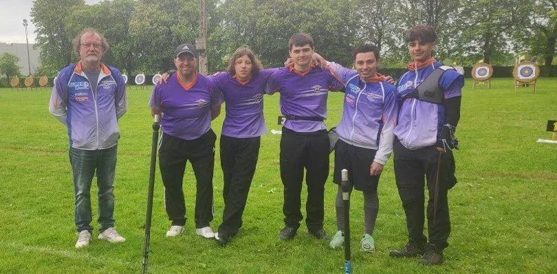 Éric Glemet, président des archers du SO Candé, quelques-uns des meilleurs compétiteurs du club, Franck Audouin, Pascale Glemin, Thomas Meslin, Benjamin Sorin et Nathan Cottenceau. © Ouest-France