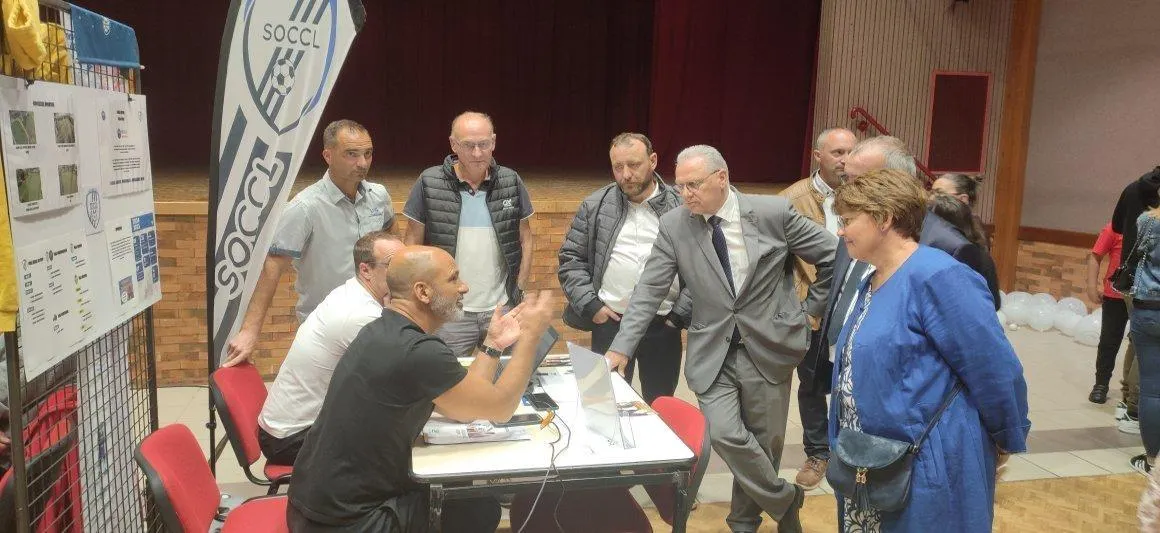 En 2024, Philippe Chopin, préfet du Maine-et-Loire, avait fait halte auprès de plusieurs stands associatifs. Ici le club de football. © Archives Ouest-France