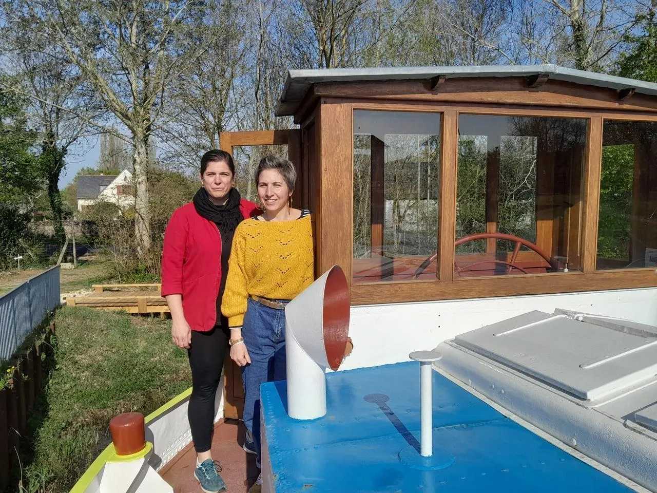 L’équipe permanente d’animation de Cap Loire à bord du bateau Cap Vert. À gauche, Aline Hardou, directrice, et Laurianne Granica, chargée d’animation. © Ouest-France