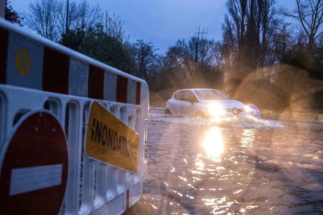 Emprunter une route inondée peut s’avérer extrêmement dangereux. En Maine-et-Loire, 45 axes sont coupés à la circulation ce dimanche 22 février. © Guillaume Saligot / Ouest-France