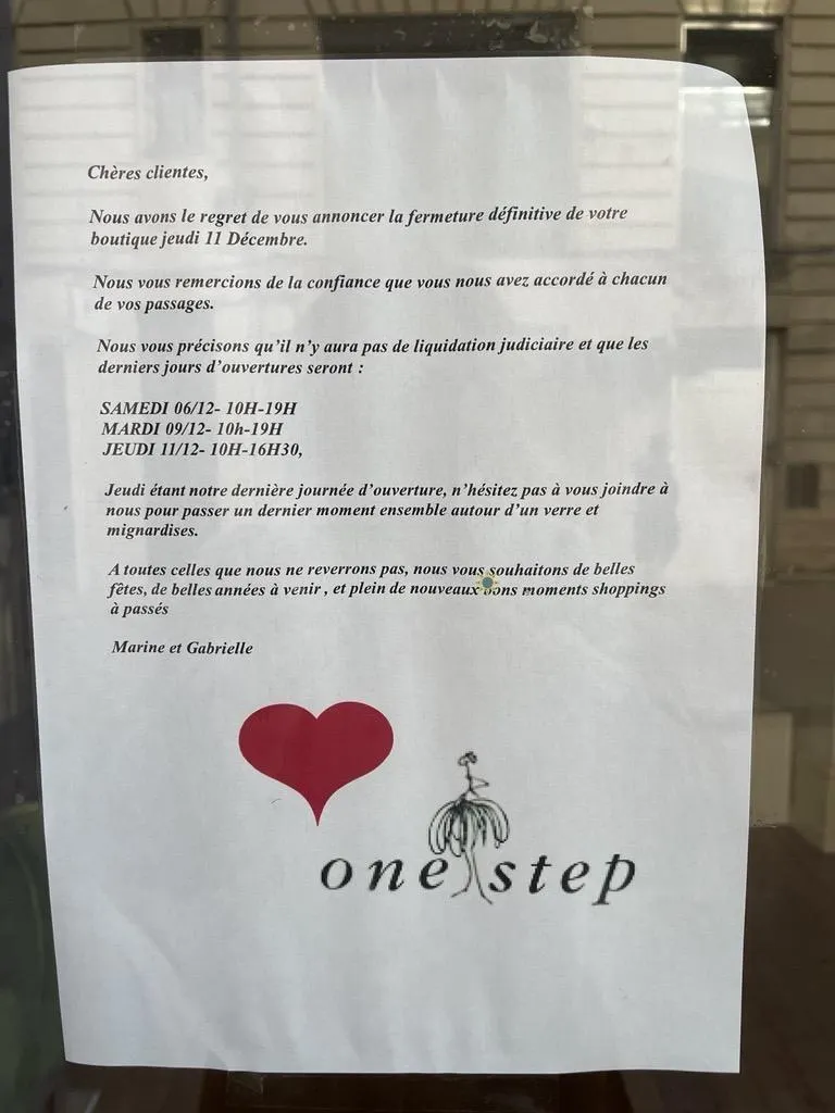 Ce jeudi 11 décembre 2025, de nombreuses boutiques du groupe IKKS abaisseront définitivement le rideau. À Angers, la boutique One Step prévient ses clientes. D’autres boutiques I.Code et IKKS Junior sont aussi concernées. Alors que la décision du tribunal des activités économiques de Paris est attendue ce 12 décembre.