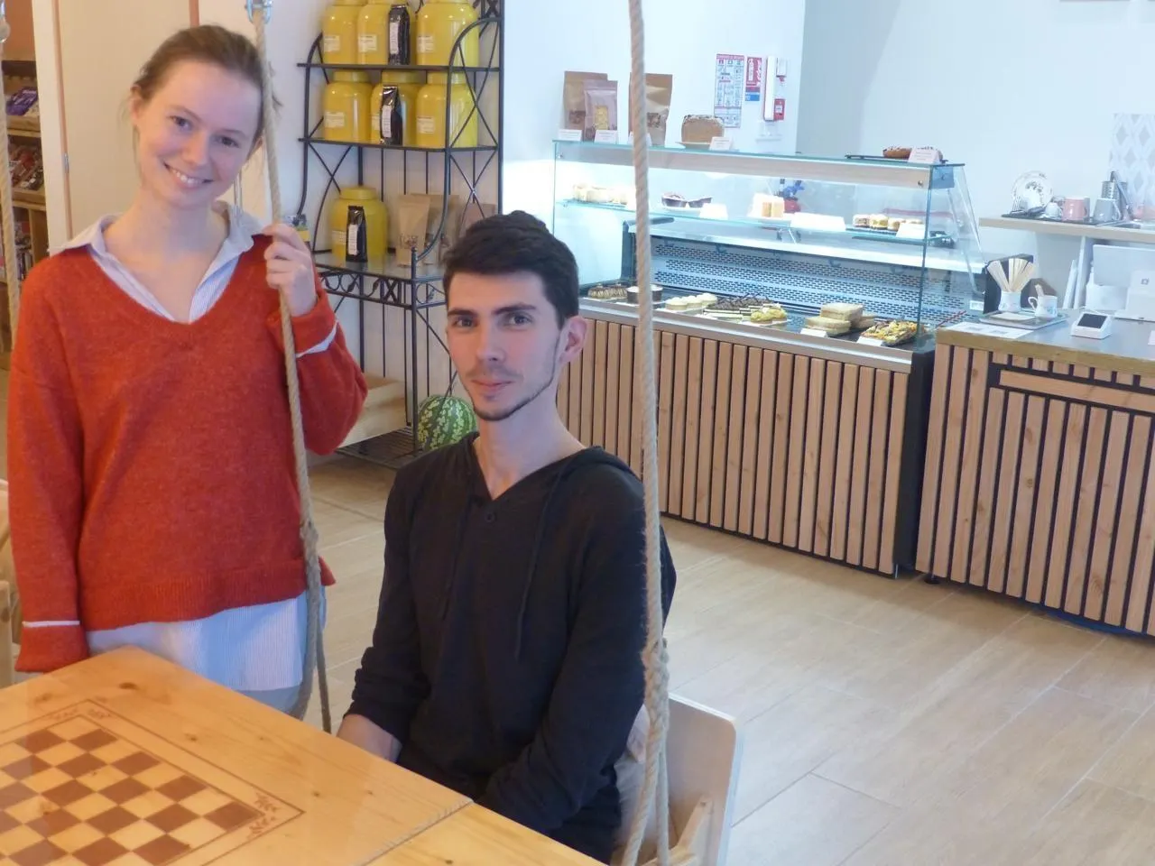 explique Adrien Hérault, 29 ans qui, avec Clélia Cornet, 27 ans, en master de neurosciences, a créé cet agréable cocon plein d’idées inventives. Comme ces balançoires accrochées aux longues cordes à côté de fauteuils classiques. Les balançoires, les bébés adorent, les adultes stressés aussi !