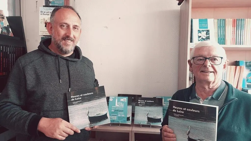 William Cherbonnier, dirigeant des éditions du Petit Pavé et Paul Babin présente « Heures et couleurs de Loire », sorti des presses de l’imprimerie la Botellerie, à Brissac, le 28 mai. © Ouest-France
