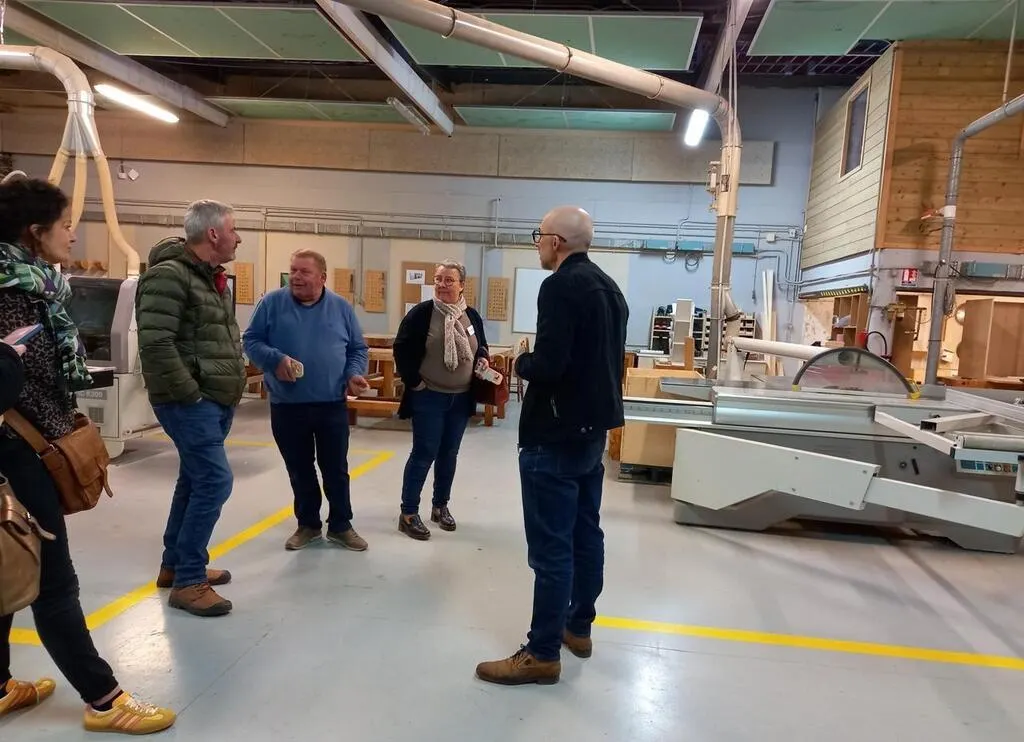 Jeudi 20 mars, dans l’atelier menuiserie, les échanges étaient nourris entre le formateur Bruno Tiberge (à droite) et les chefs d’entreprise qui reçoivent en stage ou embauchent des élèves de l’établissement régional d’enseignement adapté. © Ouest-France