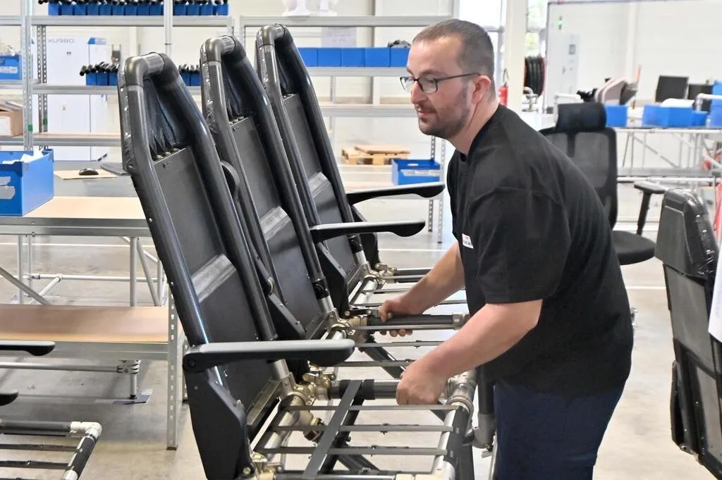 Forte d’une usine à Avrillé inaugurée en septembre 2024, la société Expliseat conçoit et produit des sièges pour des compagnies aériennes. © Jérôme Fouquet, Ouest-France.