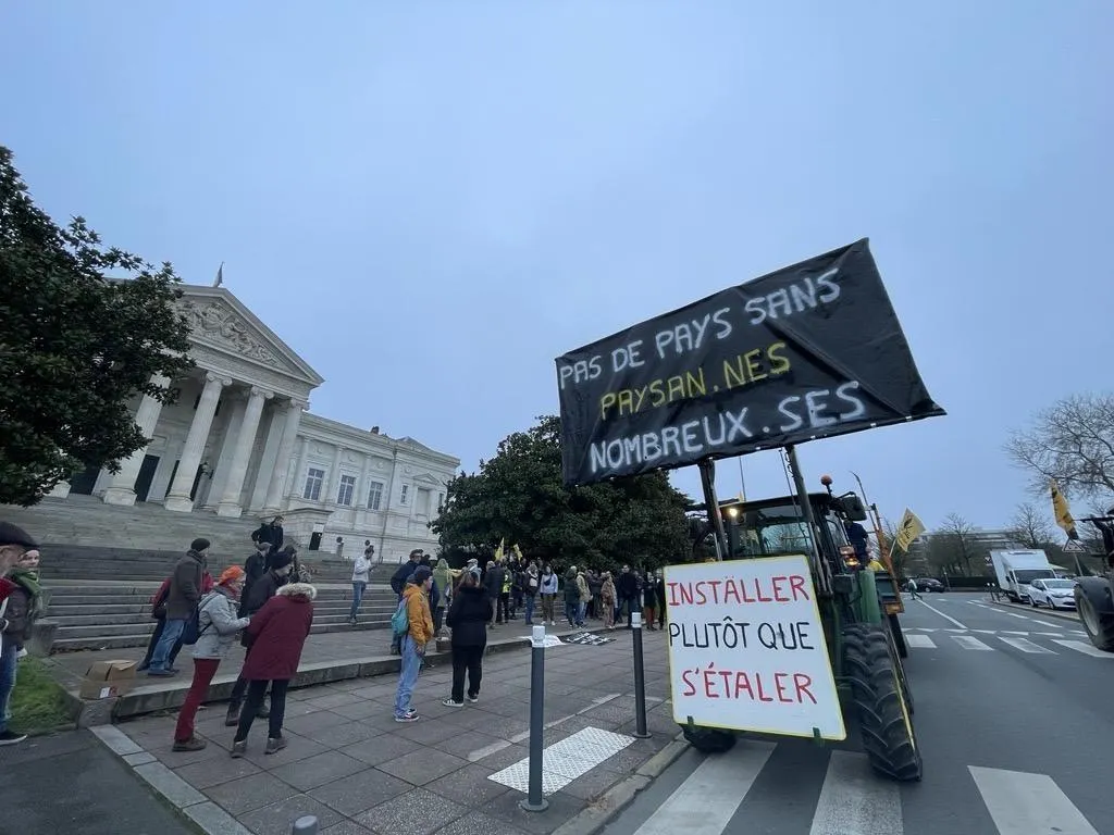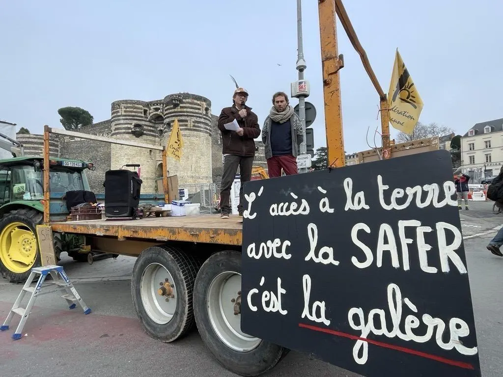 La Confédération paysanne organise un rassemblement à Angers ce samedi 30 novembre 2024 en réaction à la décision de la Safer de confier l'exploitation d'une ferme à des agriculteurs déjà installés au détriment de jeunes qui souhaitaient s'installer en agriculture biologique. Ouest-France
