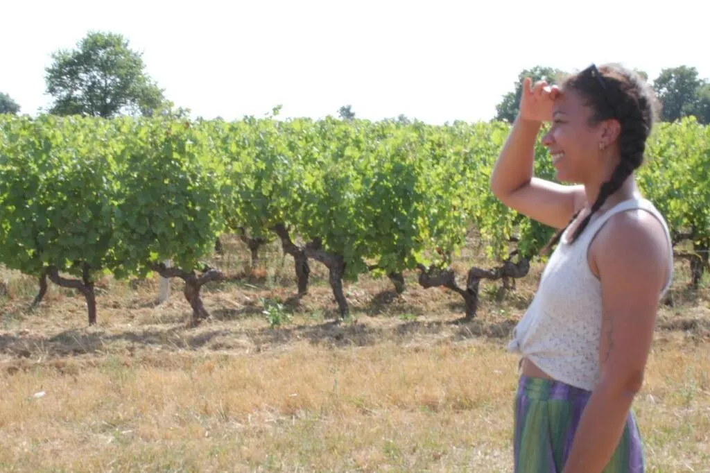 Clémence Métou, organisatrice et initiatrice du festival, en visite sur les lieux où il se tiendra les 23 et 24 août 2025, dans les vignes de Saint-Lambert-du-Lattay. © Ouest-France