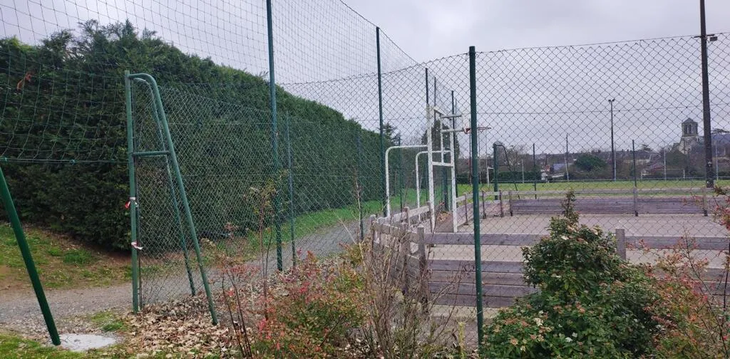 Le filet pare ballons du city-stade doit empêcher les ballons de finir dans la propriété du riverain. © Ouest-France
