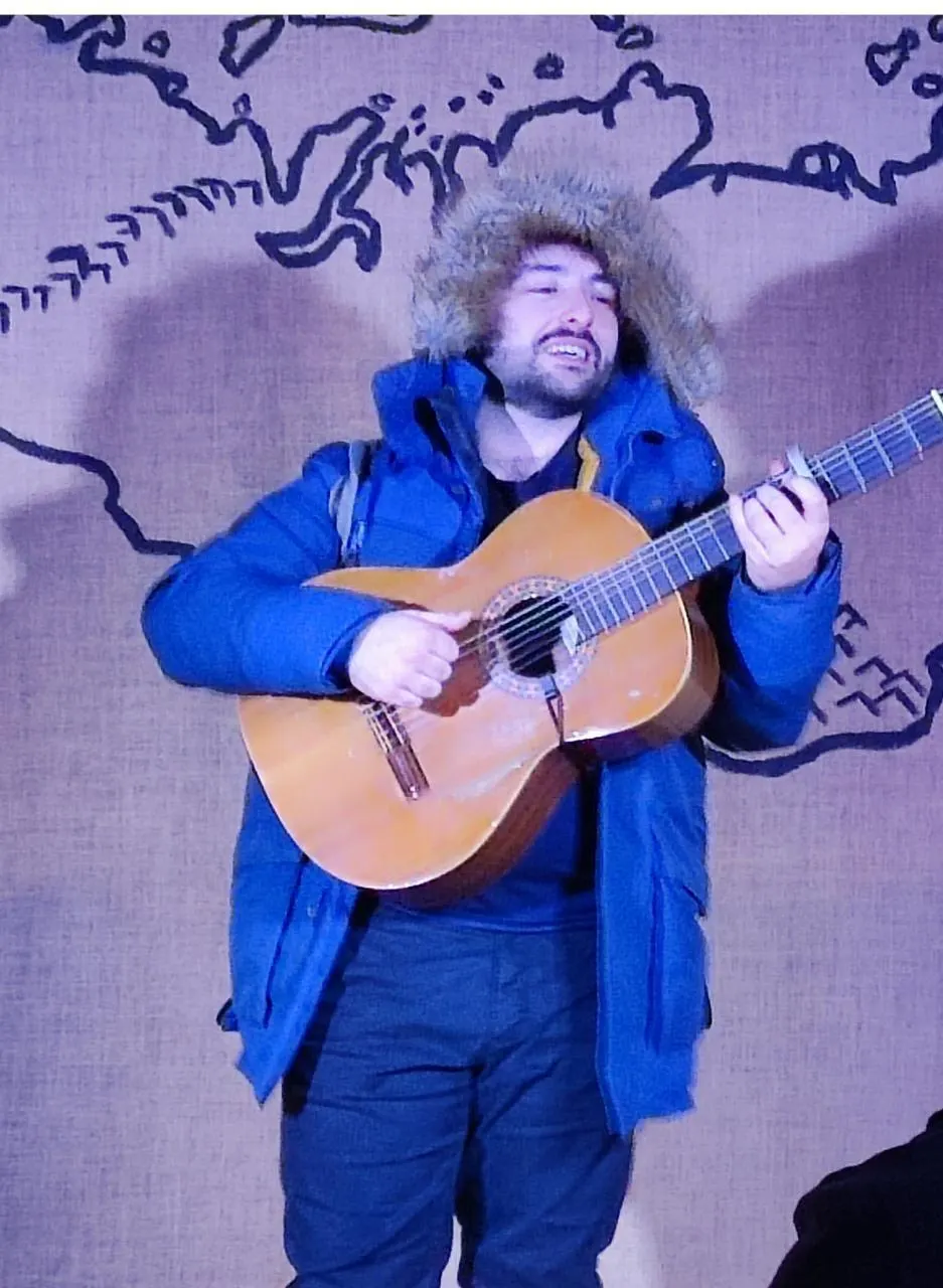 A la base musicien, il est parti en stop, en plein hiver, s’imprégner de la province russe. Pourquoi ? L’envie de pratiquer le russe, de découvrir ce pays, jusqu’au Baïkal gelé, utiliser le passeport qu’est la langue et ma guitare »,