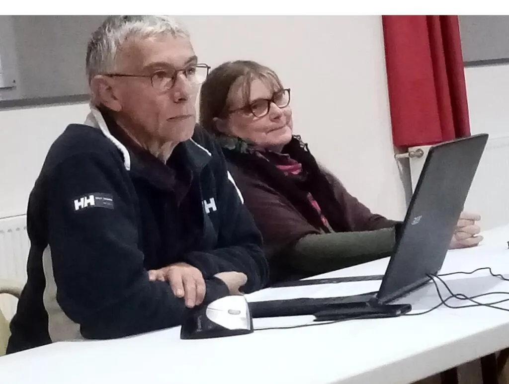 Hélène Bélaubre, la présidente, et Jean-Luc Rouland, bénévole qui a présenté les chiffres de la Boutique, lors de l’assemblée générale. © Ouest-France